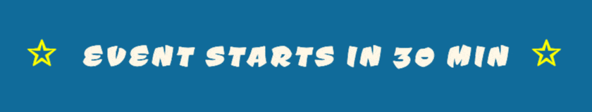 In this example, we create a high-energy alert for a concert hall entrance. It displays a single message that repeats to emphasize the concert start time. We apply a glitch effect and decorate the phrase with yellow stars to draw immediate attention. We use bolded text with increased spacing and load the unique font Ceviche One via a Google Fonts URL.